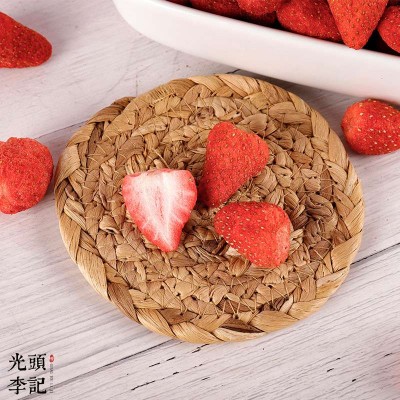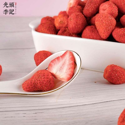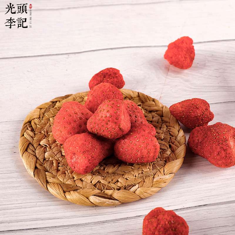新鲜草莓,制作成草莓脆保存了新鲜草莓天然的色泽、形态和风味,高颜值,香脆爽口。